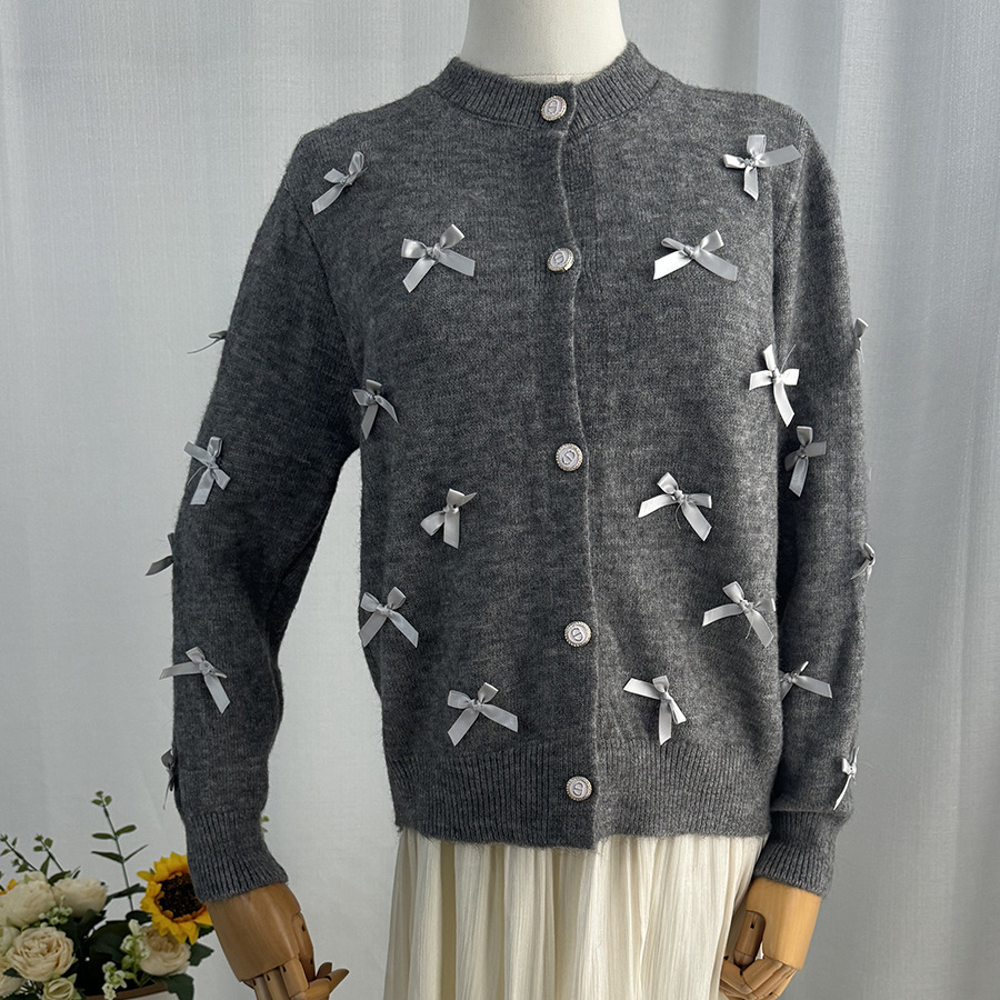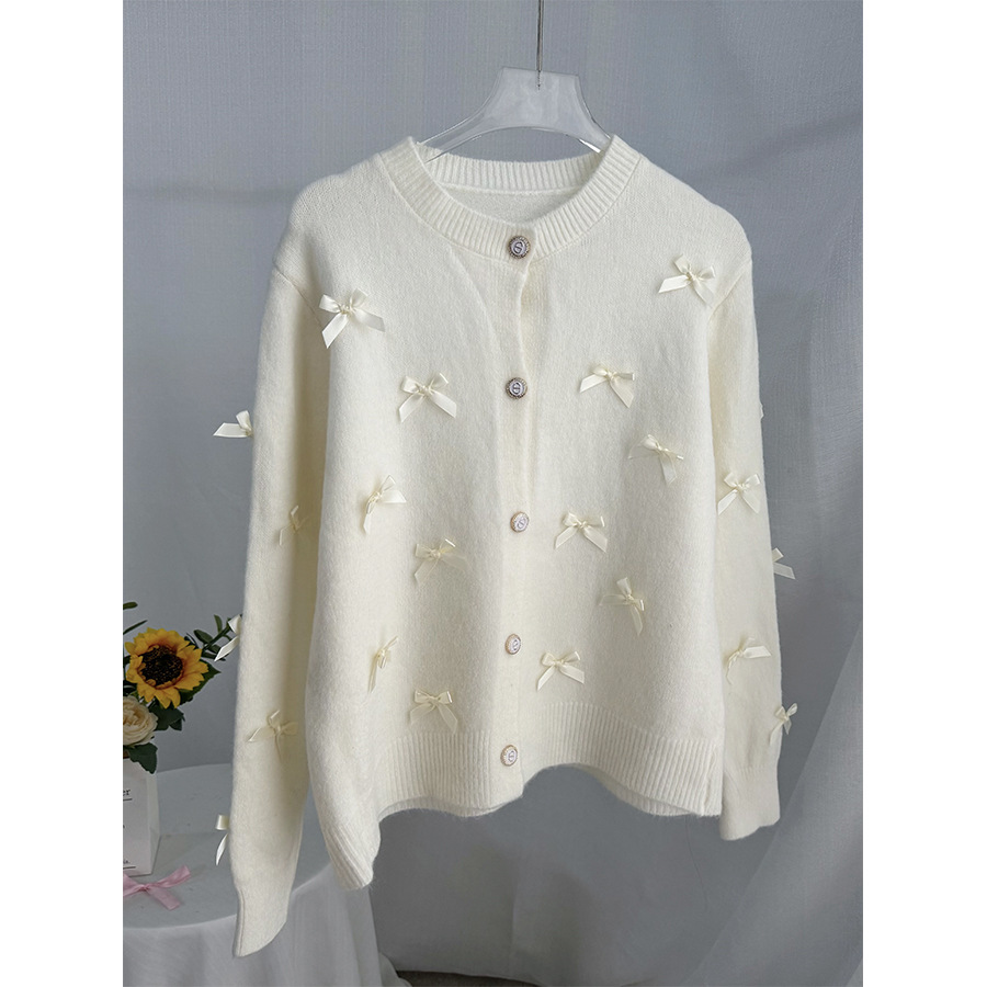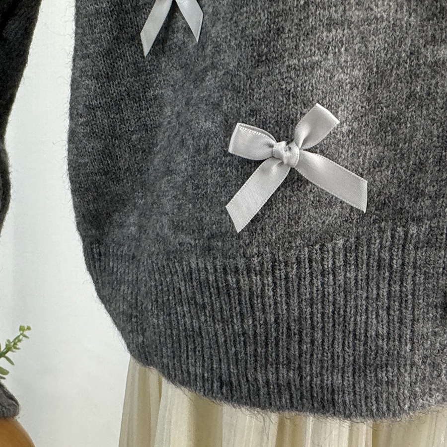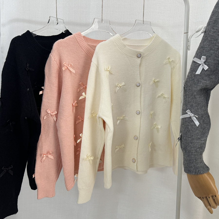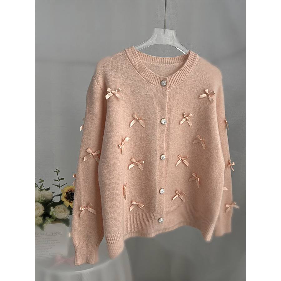 Women’s Bow Knit Cardigan – Korean Casual Loose Fit Acrylic Sweater for Everyday Wear